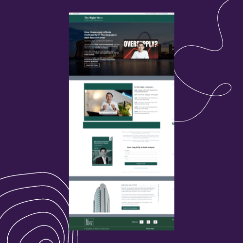 The funnel page is designed to attract potential clients by offering expert insights and strategies, showcasing the consultant's success and expertise in the Singapore real estate market.