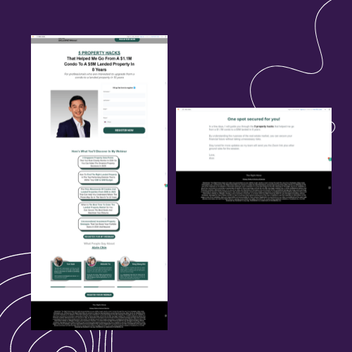This project is a funnel page design for a Singapore-based real estate consultant, aimed at attracting webinar attendees. The webinar offers valuable insights, including: